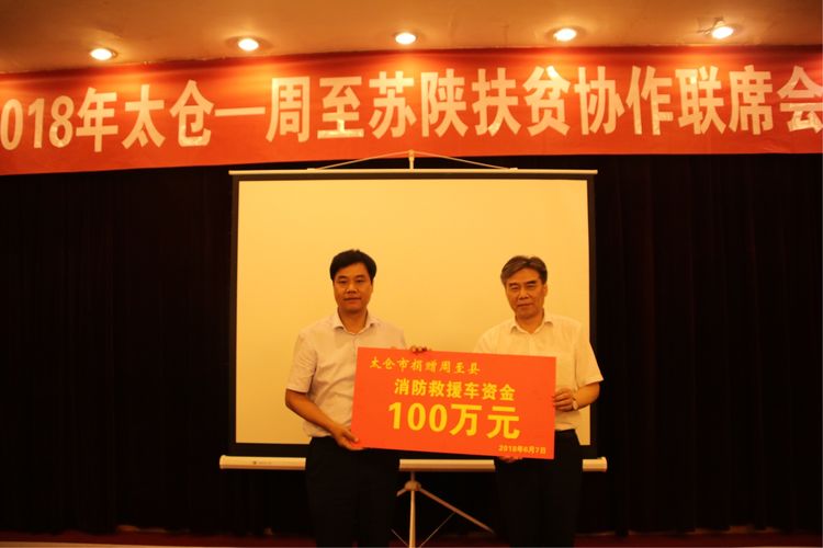 会上,还进行了捐赠和签约仪式。太仓市向周至县捐赠消防救援车资金100万元。太仓市高新区管委会分别与周至县集贤产业园区管委会签署了"区中园"共建框架协议,与周至县西部智能装备产业园区管委会签署了友好合作协议;两地科技、民政、住建、商务等部门签署了友好协作协议。