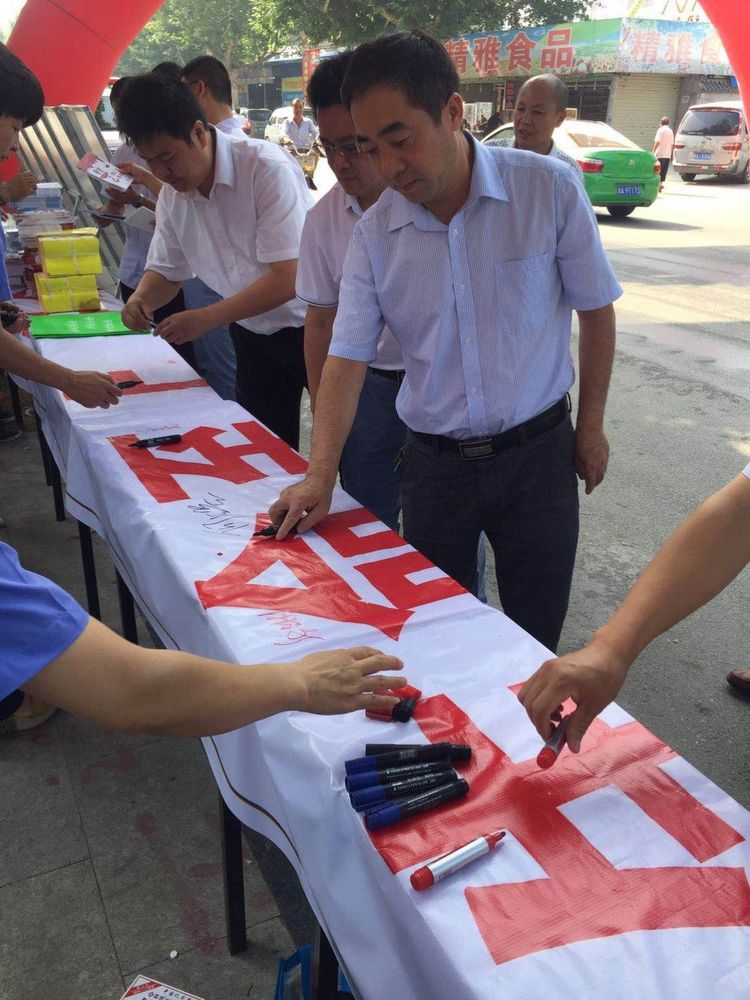 县委书记杨向喜,县人大常委会主任何凡盟,县长陈旭辉,县政协主席蒋选亮,县委常委、副县长夏鹏,副县长池晓辉带领县委办、人大办、政府办、政协办及相关部门负责人莅临活动现场指导宣传工作,在县安监局长张昕的陪同下分别前往各单位展区详细询问咨询日工作开展情况,并在安全生产主题“万人签字条幅”上签名。