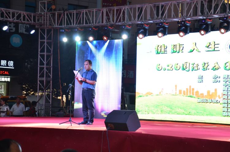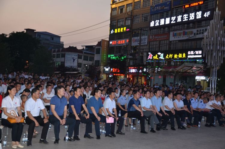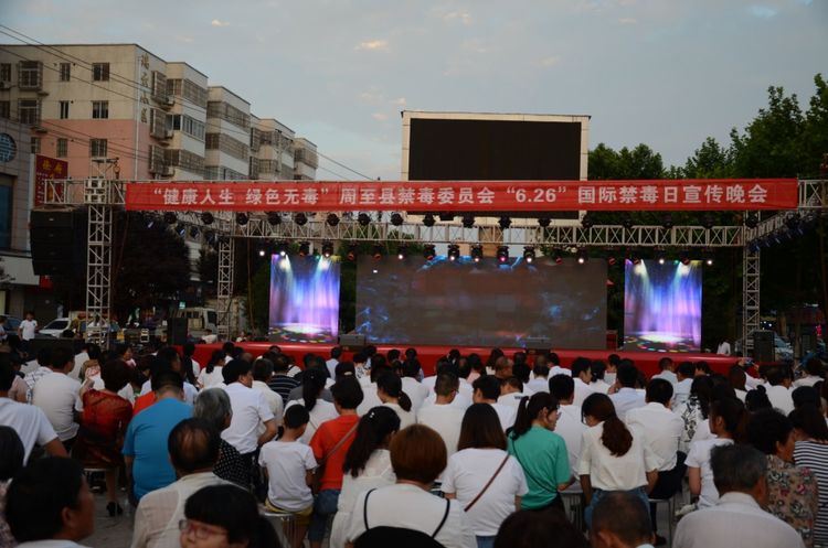 6月21日晚,由周至县禁毒委员会主办、周至县政法委员会、周至县委宣传部、周至县公安局、周至县文化体育广播电视局、周至县广播电视台承办,以“健康人生·绿色无毒”为主题的“6·26”国际禁毒日宣传晚会在我县八云塔广场举行。县人大主任何凡盟,县委副书记、县禁毒委副主任李永军,县委常委、政法委书记、县禁毒委副主任朱建平,副县长、县公安局局长高少军,省新周戒毒所所长寇鹏伟等领导出席晚会。县禁毒委35个成员单位、全县20个镇(街)干部及群众共2000余人观看了演出。