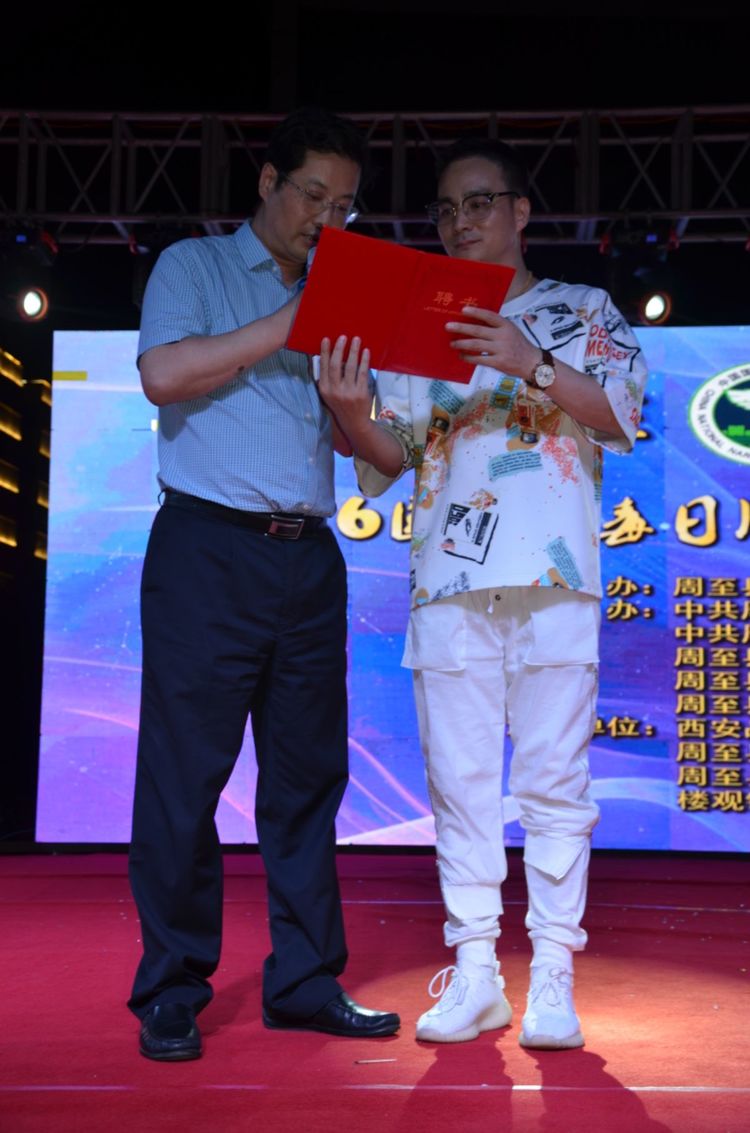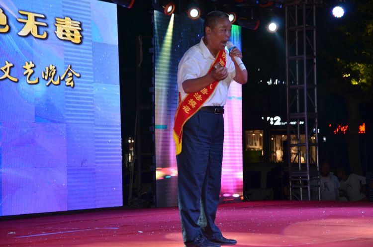 晚会邀请我县著名歌手郭少杰倾情演唱《一曲红尘》等歌曲,将晚会现场气氛推向高潮,县委副书记、县禁毒委副主任李永军现场为郭少杰颁发“禁毒宣传大使”聘书,聘请郭少杰为我县“禁毒宣传大使”。