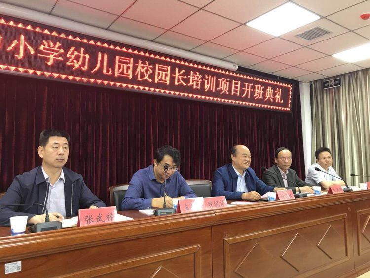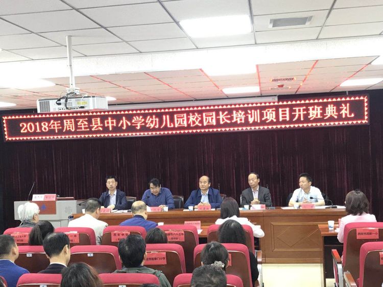 5月22日上午,陕西省教育厅2018年周至县中小学幼儿园校园长培训项目开班典礼在陕西学前师范学院雁塔校区隆重举行。省教育厅副厅长刘建林、陕西学前师范学院党委副书记朱选朝、省教育厅教师工作处处长罗侃淳、省校园长培训中心主任王奂新出席开班典礼,周至县人民政府副县长马震、县教育局局长张武祥、副局长尚雷和参加培训的27名校园长参加开班典礼;组织“影子培训“的15所基地学校、幼儿园的负责同志也参加了开班典礼。省教育厅教师工作处处长罗侃淳主持开班典礼。