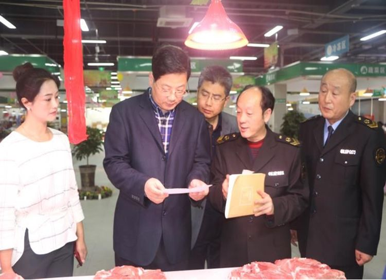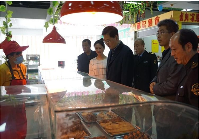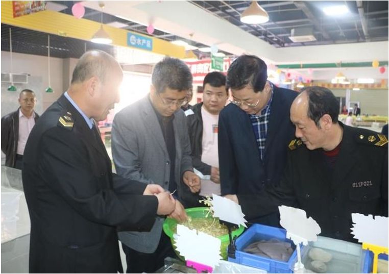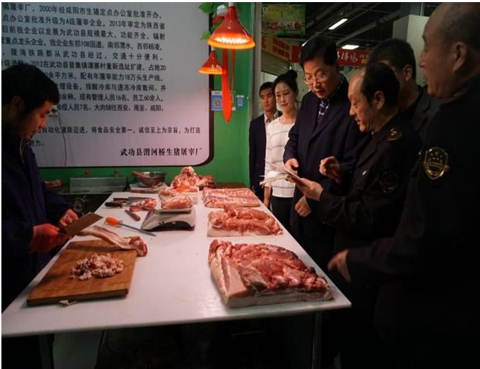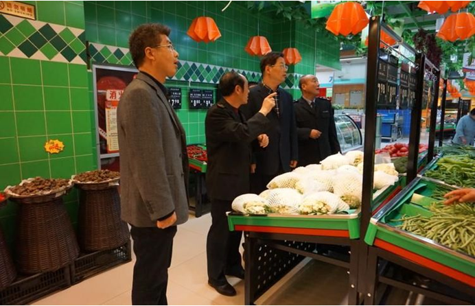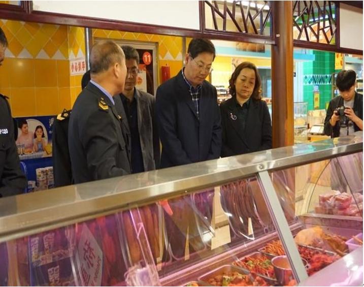 检查组一行首先对周至县东关农贸综合市场进行了检查,李永军书记详细了解了东关农贸市场的规模、管理状况,与监管人员一起检查了市场食品安全制度落实情况,对从业人员健康证明、索证索票、肉菜追溯体系的建立等情况进行了重点检查,对发现的问题责令立即整改到位。
